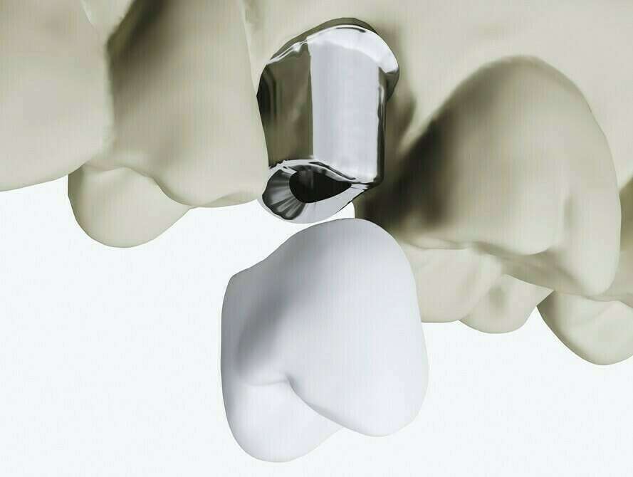 > Cette couronne est ensuite scellée comme s’il s’agissait d’une reconstitution simple.